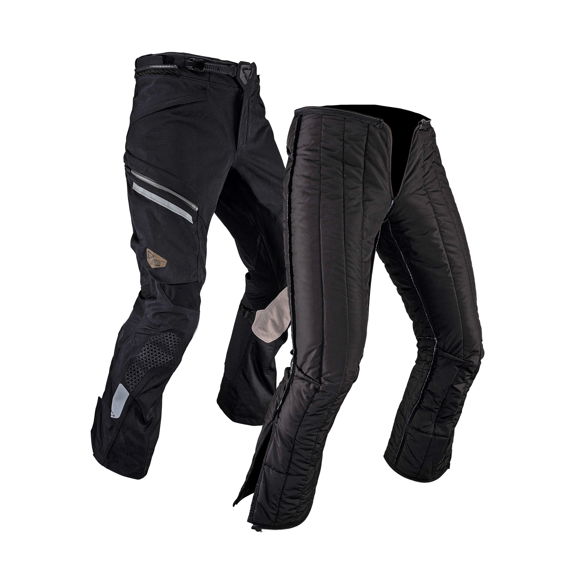 Introducing the rugged Leatt ADV DriTour 7.5 pants: essential any-weather gear. They serve a dual purpose thanks to the directly laminated HydraDri Dri+ outer layer for wet rides, and a removable thermal liner for colder ones. YKK ventilation zips situated at the rear provide outstanding airflow. These pants feature Leatt 3DF protectors at the knees and hips, providing enhanced safety during your rides.